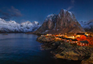 Dass die Anreise Zeit in Anspruch nehmen würde, war uns bewusst: Mit dem Zug ging es nach Wien-Schwechat, weiter per Flug nach Oslo, von dort nach Bodø und schließlich mit einer kleinen DASH-8, gebaut für kurze Start- und Landebahnen wie jene in Leknes nach ebendort. Gegen 21:30 Uhr nahmen wir unsere Mietwägen in Empfang und fuhren die letzte, etwa einstündige Strecke nach Hamnøy. Dort angekommen – in einer wahrlich luxuriösen Lodge auf der Insel Moskenes – begrüßten uns bereits die ersten, zarten Schleier der Nordlichter.